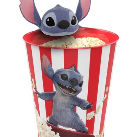 Esta divertida palomera viene con un Stitch de peluche que se puede quitar. Será perfecta para tu colección.